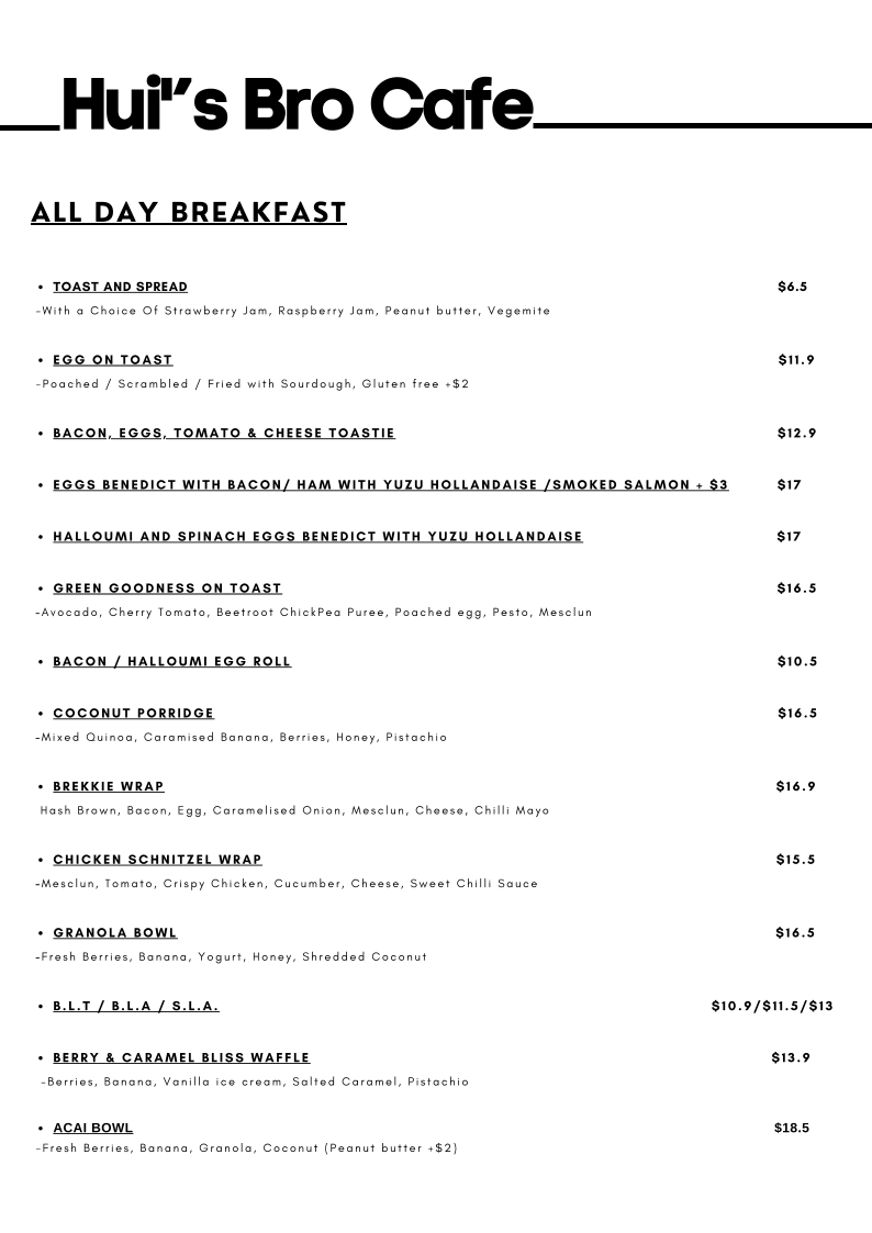 Welcome to Hui Bro's Cafe, your new favorite spot nestled in the heart of Newtown, Australia. This charming cafe offers a vibrant menu that caters to diverse palates, showcasing a delightful array of dishes that ensure freshness and flavor with every bite.